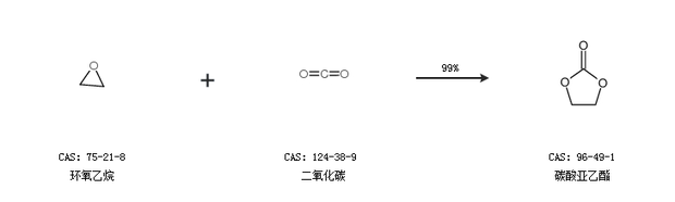 1.通过环氧乙烷和二氧化碳合成碳酸亚乙酯,收率约99%;