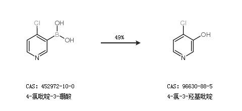 1.通过4-氯吡啶-3-硼酸合成4-氯-3-羟基吡啶,收率约49%;