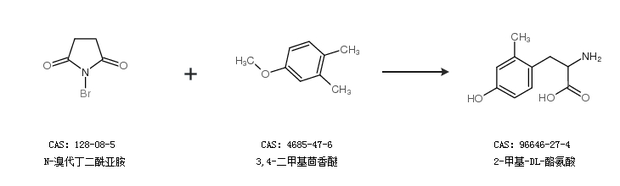 1.通过N-溴代丁二酰亚胺和3,4-二甲基茴香醚合成2-甲基-DL-酪氨酸