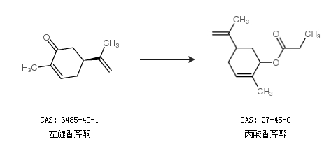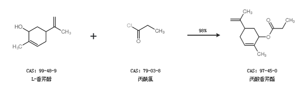 1.通过L-香芹醇和丙酰氯合成丙酸香芹酯,收率约98%;