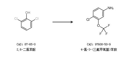 1.通过2,6-二氯苯酚合成4-氯-3-(三氟甲氧基)苯胺
