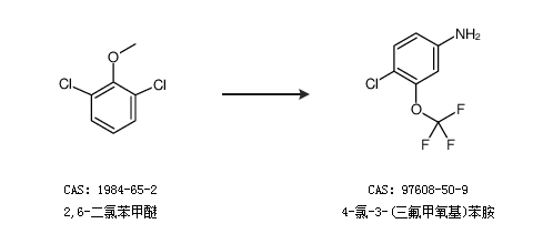 2.通过2,6-二氯苯甲醚合成4-氯-3-(三氟甲氧基)苯胺