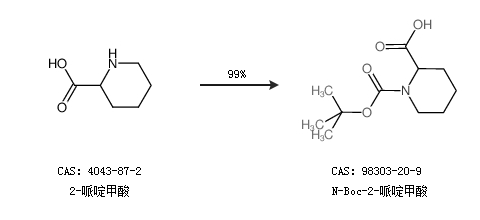 1.通过2-哌啶甲酸合成N-Boc-2-哌啶甲酸,收率约99%;