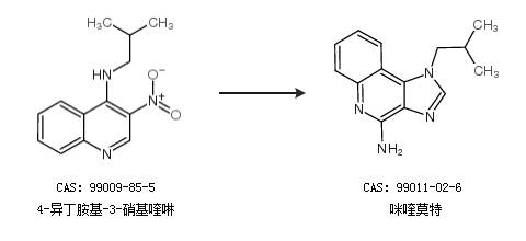 1.通过1-(2-甲基丙基)-1H-咪唑并[4,5-c]喹啉 5,n-氧化物合成咪喹莫特,收率约77%;