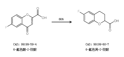 1.通过6-氟色酮-2-羧酸合成6-氟色满-2-羧酸,收率约86%;