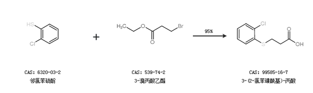 1.通过邻氯苯硫酚和3-溴丙酸乙酯合成3-(2-氯苯磺酰基)-丙酸,收率约95%;