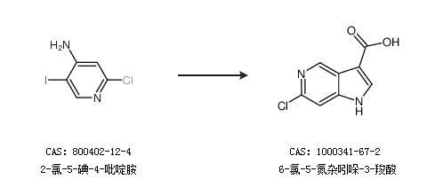2.通过2-氯-5-碘-4-吡啶胺合成6-氯-5-氮杂吲哚-3-羧酸