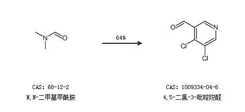 2.通过N,N-二甲基甲酰胺合成4,5-二氯-3-吡啶羧醛,收率约64%;