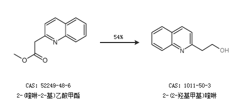 2.通过2-(喹啉-2-基)乙酸甲酯合成2-(2-羟基甲基)喹啉,收率约54%;