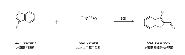 1.通过3-溴苯并噻吩和N,N-二甲基甲酰胺合成3-溴苯并噻吩-2-甲醛,收率约90%;