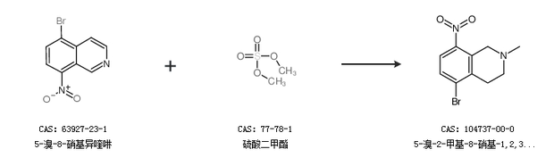 1.通过5-溴-8-硝基异喹啉和硫酸二甲酯合成5-溴-2-甲基-8-硝基-1,2,3,4-四氢异喹啉,收率约97%;
