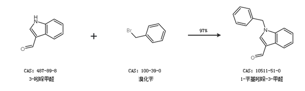 1.通过3-吲哚甲醛和溴化苄合成1-苄基吲哚-3-甲醛,收率约97%;