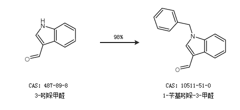 2.通过3-吲哚甲醛合成1-苄基吲哚-3-甲醛,收率约98%;
