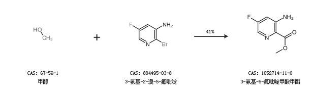 1.通过甲醇和3-氨基-2-溴-5-氟吡啶合成3-氨基-5-氟吡啶甲酸甲酯,收率约41%;