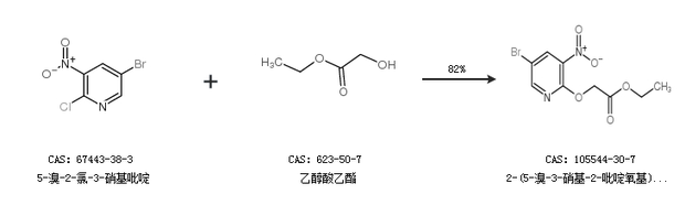 1.通过5-溴-2-氯-3-硝基吡啶和乙醇酸乙酯合成2-(5-溴-3-硝基-2-吡啶氧基)乙酸乙酯,收率约82%;