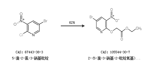 2.通过5-溴-2-氯-3-硝基吡啶合成2-(5-溴-3-硝基-2-吡啶氧基)乙酸乙酯,收率约62%;