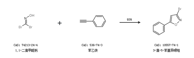 1.通过1,1-二溴甲醛肟和苯乙炔合成3-溴-5-苯基异噁唑,收率约93%;