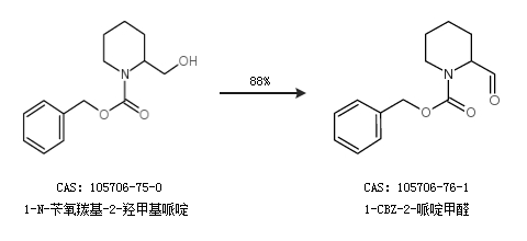 1.通过1-N-苄氧羰基-2-羟甲基哌啶合成1-CBZ-2-哌啶甲醛,收率约88%;