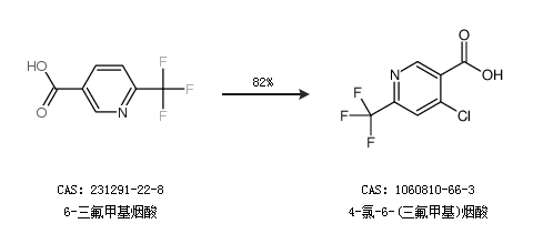 1.通过6-三氟甲基烟酸合成4-氯-6-(三氟甲基)烟酸,收率约82%;