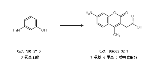 1.通过3-氨基苯酚合成7-氨基-4-甲基-3-香豆素醋酸