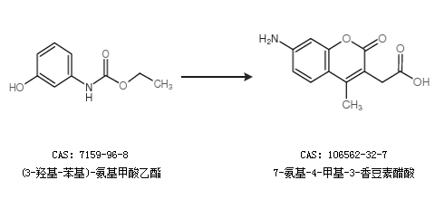2.通过(3-羟基-苯基)-氨基甲酸乙酯合成7-氨基-4-甲基-3-香豆素醋酸