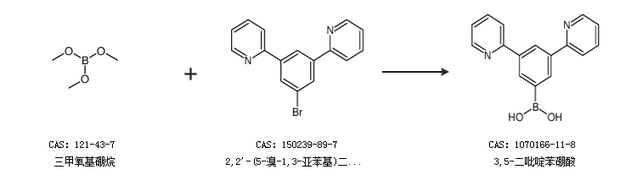2.通过三甲氧基硼烷和2,2''-(5-溴-1,3-亚苯基)二吡啶合成3,5-二吡啶苯硼酸
