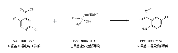 1.通过5-氨基-2-氯吡啶-4-羧酸和三甲基硅烷化重氮甲烷合成5-氨基-2-氯异烟酸甲酯