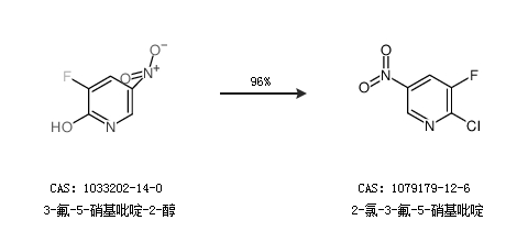 1.通过3-氟-5-硝基吡啶-2-醇合成2-氯-3-氟-5-硝基吡啶,收率约96%;