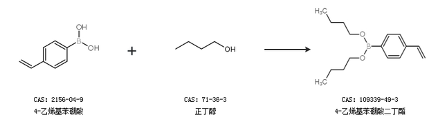 1.通过4-乙烯基苯硼酸和正丁醇合成4-乙烯基苯硼酸二丁酯