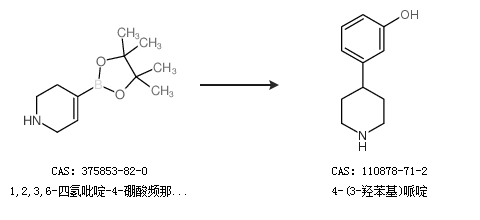 2.通过1,2,3,6-四氢吡啶-4-硼酸频那醇酯合成4-(3-羟苯基)哌啶