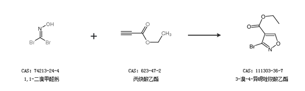 2.通过1,1-二溴甲醛肟和丙炔酸乙酯合成3-溴-4-异噁唑羧酸乙酯
