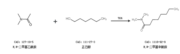 2.通过N,N-二甲基乙酰胺和正己醇合成N,N-二甲基辛酰胺,收率约76%;