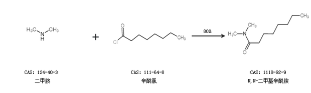 1.通过二甲胺和辛酰氯合成N,N-二甲基辛酰胺,收率约80%;