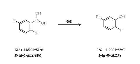 1.通过5-溴-2-氟苯硼酸合成2-氟-5-溴苯酚,收率约90%;