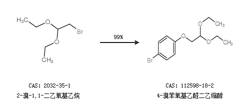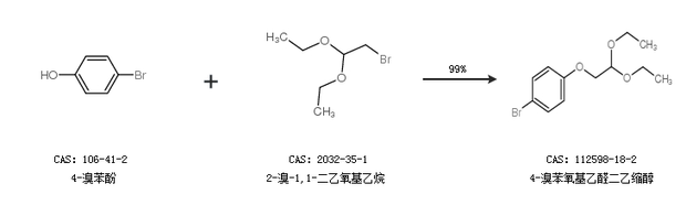 1.通过4-溴苯酚和2-溴-1,1-二乙氧基乙烷合成4-溴苯氧基乙醛二乙缩醇,收率约99%;