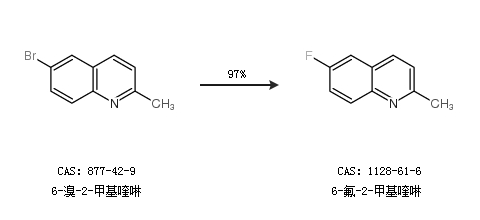 1.通过6-溴-2-甲基喹啉合成6-氟-2-甲基喹啉,收率约97%;