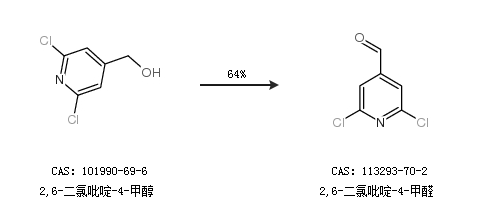2.通过2,6-二氯吡啶-4-甲醇合成2,6-二氯吡啶-4-甲醛,收率约64%;