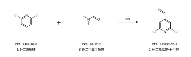 1.通过2,6-二氯吡啶和N,N-二甲基甲酰胺合成2,6-二氯吡啶-4-甲醛,收率约88%;