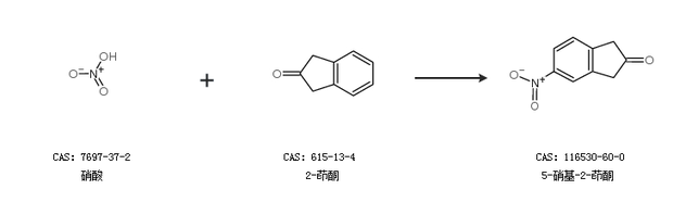 2.通过硝酸和2-茚酮合成5-硝基-2-茚酮