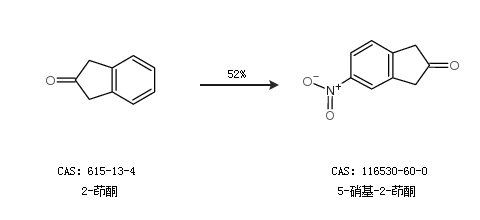 1.通过2-茚酮合成5-硝基-2-茚酮,收率约52%;
