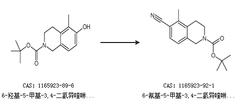 2.通过6-羟基-5-甲基-3,4-二氢异喹啉-2(1h)-羧酸叔丁酯合成6-氰基-5-甲基-3,4-二氢异喹啉-2(1h)-羧酸叔丁酯