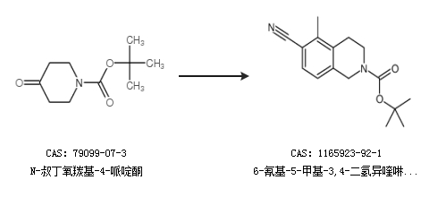 1.通过N-叔丁氧羰基-4-哌啶酮合成6-氰基-5-甲基-3,4-二氢异喹啉-2(1h)-羧酸叔丁酯