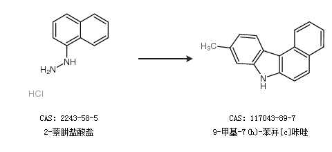 1.通过2-萘肼盐酸盐合成9-甲基-7(h)-苯并[c]咔唑