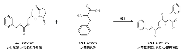 1.通过Z-甘氨酸 N-琥珀酰亚胺酯和L-苯丙氨酸合成N-苄氧羰基甘氨酰-L-苯丙氨酸,收率约99%;