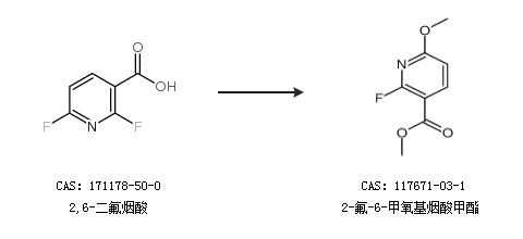 1.通过2,6-二氟烟酸合成2-氟-6-甲氧基烟酸甲酯