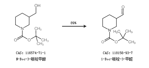 1.通过N-Boc-3-哌啶甲醇合成1-Boc-哌啶-3-甲醛,收率约89%;