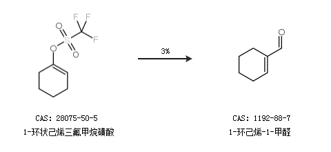 2.通过1-环状己烯三氟甲烷磺酸合成1-环己烯-1-甲醛,收率约3%;