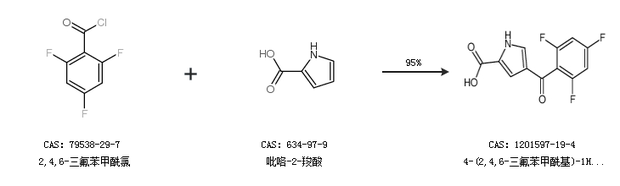 1.通过2,4,6-三氟苯甲酰氯和吡咯-2-羧酸合成4-(2,4,6-三氟苯甲酰基)-1H-吡咯-2-羧酸,收率约95%;