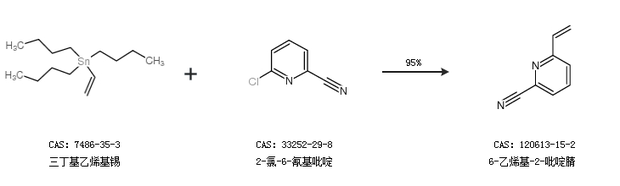 1.通过三丁基乙烯基锡和2-氯-6-氰基吡啶合成6-乙烯基-2-吡啶腈,收率约95%;
