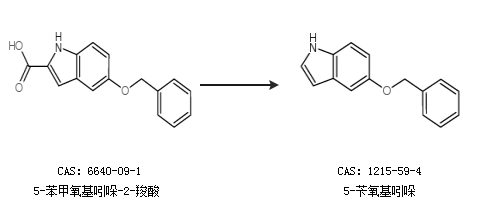 2.通过5-苯甲氧基吲哚-2-羧酸合成5-苄氧基吲哚